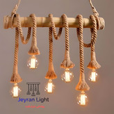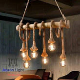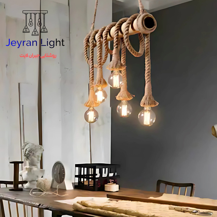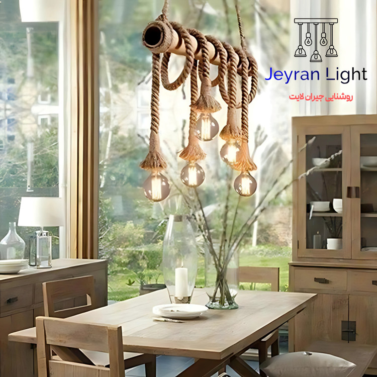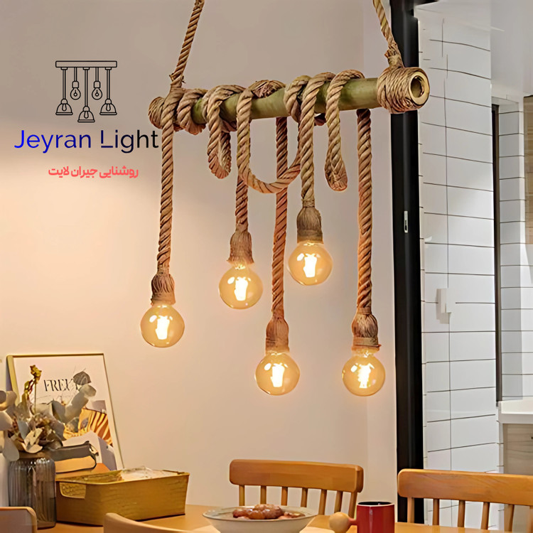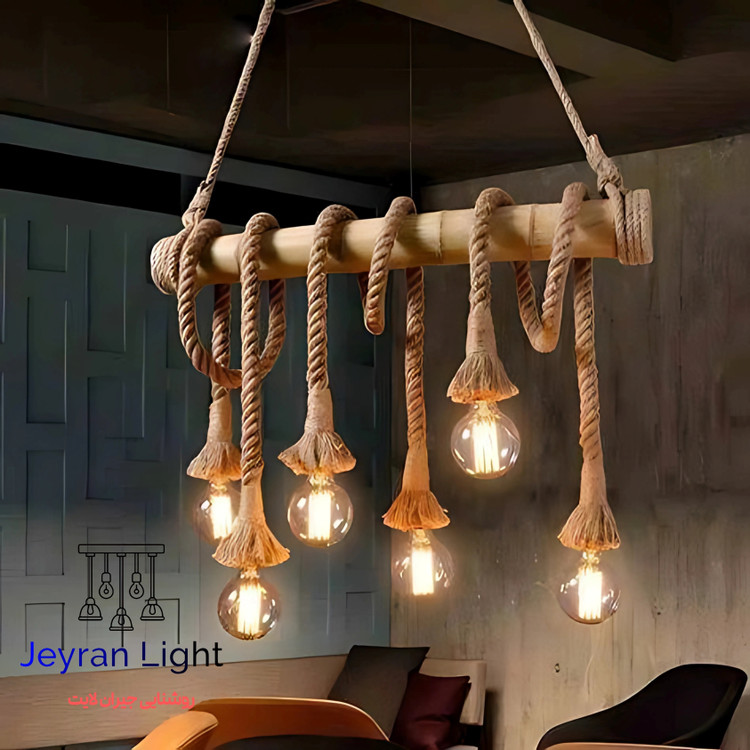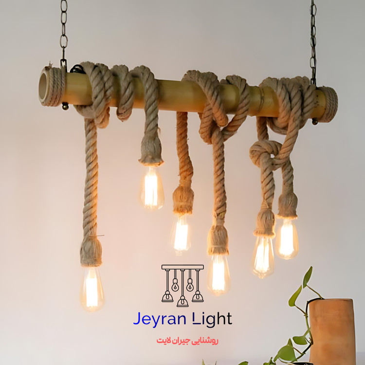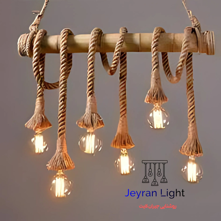 لوستر آویز 6 شعله مدل چوب بامبو کنفی